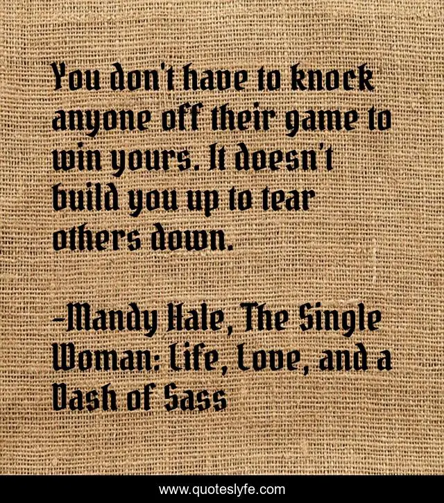 "Mandy Hale, The Single Woman: Life, Love, and a Dash of Sass Quotes." Quoteslyfe.com, 2025. Fri. 05 Dec. 2025. <https://www.quoteslyfe.com/quote/You-don-t-have-to-knock-anyone-95518>.