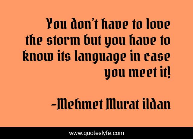 This page presents the quote "You don’t have to love the storm but you have to know its language in case you meet it!". Author of this quote is Mehmet Murat ildan. This quote is about özdeyişler, mehmet-murat-ildan, özlü-sözler, ildan-sözleri, storms, türk-yazar-sözleri, aforizmalar, storm, mehmet-murat-ildan-özlü-sözleri,.