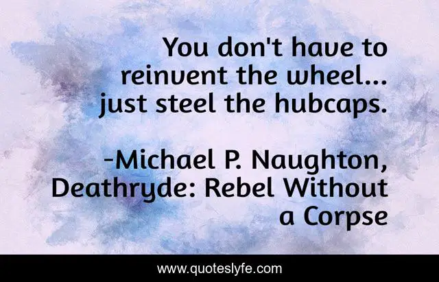 "Michael P. Naughton, Deathryde: Rebel Without a Corpse Quotes." Quoteslyfe.com, 2025. Fri. 05 Dec. 2025. <https://www.quoteslyfe.com/quote/You-don-t-have-to-reinvent-the-108707>.