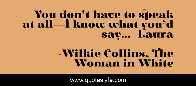 This page presents the quote "You don’t have to speak at all—I know what you’d say…- Laura". Author of this quote is Wilkie Collins, The Woman in White. This quote is about knowing, conversations, talk, speak,.