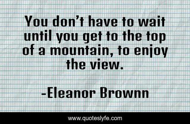This page presents the quote "You don’t have to wait until you get to the top of a mountain, to enjoy the view.". Author of this quote is Eleanor Brownn. This quote is about acceptance, present-moment, mindfulness,.