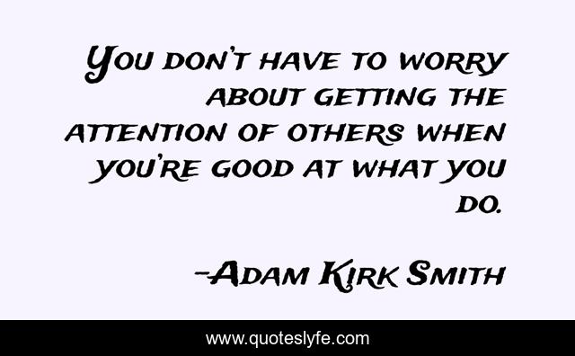 This page presents the quote "You don’t have to worry about getting the attention of others when you’re good at what you do.". Author of this quote is Adam Kirk Smith. This quote is about good, work, attention,.
