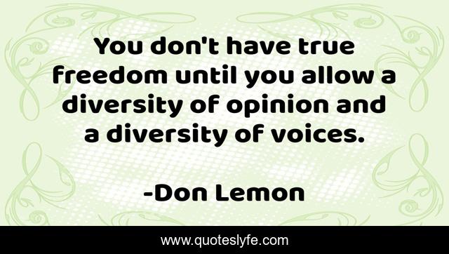 This page presents the quote "You don't have true freedom until you allow a diversity of opinion and a diversity of voices.". Author of this quote is Don Lemon. This quote is about opinion, diversity,.