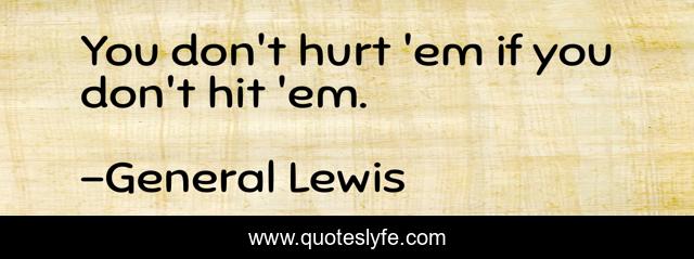 This page presents the quote "You don't hurt 'em if you don't hit 'em.". Author of this quote is General Lewis. .