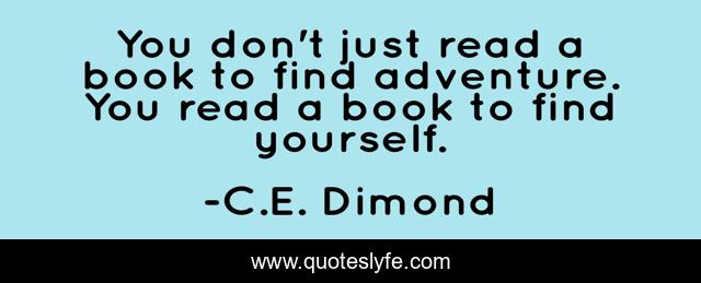 This page presents the quote "You don't just read a book to find adventure. You read a book to find yourself.". Author of this quote is C.E. Dimond. This quote is about self-discovery, reading, books-reading, inspirational, enthusiasm,.