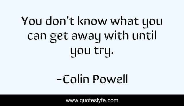 This page presents the quote "You don't know what you can get away with until you try.". Author of this quote is Colin Powell. This quote is about enthusiasm, leadership, inspirational,.