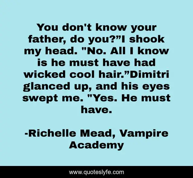 "Richelle Mead, Vampire Academy Quotes." Quoteslyfe.com, 2025. Fri. 05 Dec. 2025. <https://www.quoteslyfe.com/quote/You-don-t-know-your-father-do-234978>.