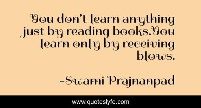 This page presents the quote "You don't learn anything just by reading books.You learn only by receiving blows.". Author of this quote is Swami Prajnanpad. .