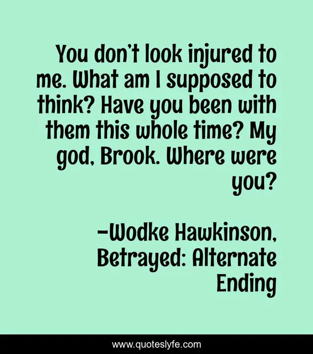 "Wodke Hawkinson, Betrayed: Alternate Ending Quotes." Quoteslyfe.com, 2025. Mon. 08 Dec. 2025. <https://www.quoteslyfe.com/quote/You-don-t-look-injured-to-me-200664>.
