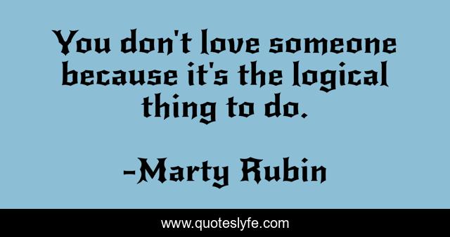 This page presents the quote "You don't love someone because it's the logical thing to do.". Author of this quote is Marty Rubin. This quote is about love, affection, logic,.