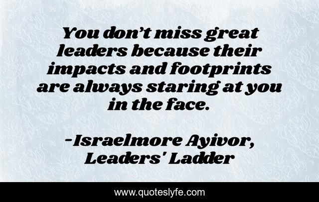 "Israelmore Ayivor, Leaders' Ladder Quotes." Quoteslyfe.com, 2026. Wed. 14 Jan. 2026. <https://www.quoteslyfe.com/quote/You-don-t-miss-great-leaders-because-31839>.