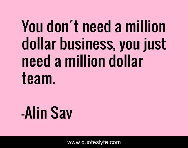 This page presents the quote "You don´t need a million dollar business, you just need a million dollar team.". Author of this quote is Alin Sav. .