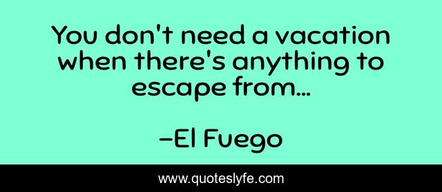This page presents the quote "You don't need a vacation when there's anything to escape from...". Author of this quote is El Fuego. This quote is about travel, vacation, escape,.