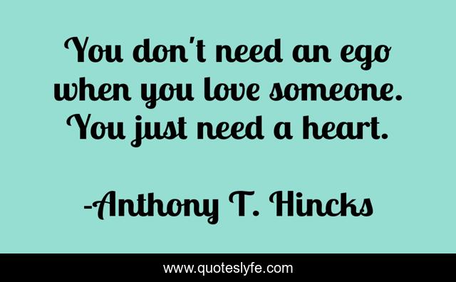 This page presents the quote "You don't need an ego when you love someone. You just need a heart.". Author of this quote is Anthony T. Hincks. This quote is about heart, life, someone, love, philosophy, ego, need, affection,.