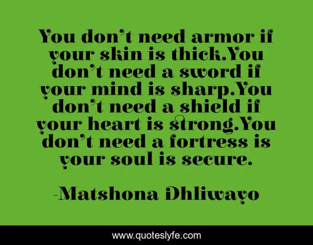 "Matshona Dhliwayo Quotes." Quoteslyfe.com, 2025. Sat. 06 Dec. 2025. <https://www.quoteslyfe.com/quote/You-don-t-need-armor-if-your-208122>.