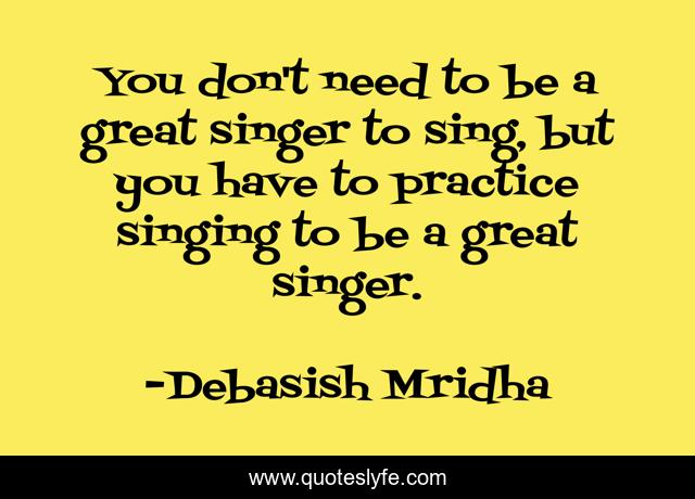 This page presents the quote "You don't need to be a great singer to sing, but you have to practice singing to be a great singer.". Author of this quote is Debasish Mridha. This quote is about debasish, mridha, philosophy, debasish-mridha, great-singer, hope, practice-singing, aspirations, dreams,.