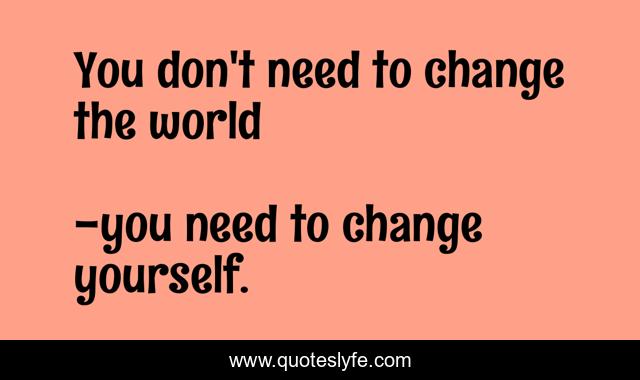 This page presents the quote "You don't need to change the world". Author of this quote is you need to change yourself.. .