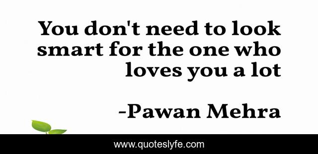 This page presents the quote "You don't need to look smart for the one who loves you a lot". Author of this quote is Pawan Mehra. This quote is about lifestyle, love, smart, affection, care,.