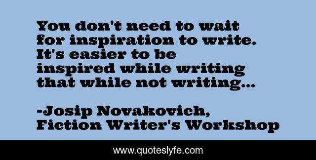 This page presents the quote "You don't need to wait for inspiration to write. It's easier to be inspired while writing that while not writing...". Author of this quote is Josip Novakovich, Fiction Writer's Workshop. This quote is about inspiration, writing,.