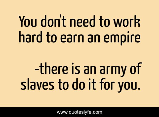 "there is an army of slaves to do it for you. Quotes." Quoteslyfe.com, 2025. Fri. 05 Dec. 2025. <https://www.quoteslyfe.com/quote/You-don-t-need-to-work-hard-47652>.