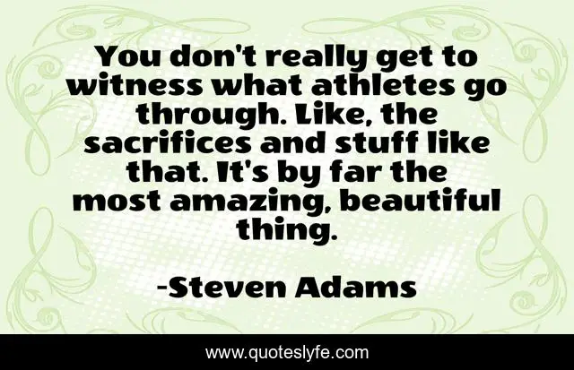 This page presents the quote "You don't really get to witness what athletes go through. Like, the sacrifices and stuff like that. It's by far the most amazing, beautiful thing.". Author of this quote is Steven Adams. This quote is about beautiful, through,.