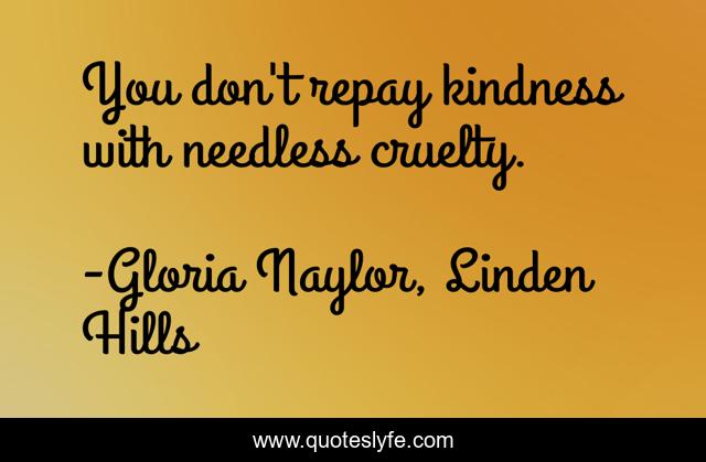 This page presents the quote "You don't repay kindness with needless cruelty.". Author of this quote is Gloria Naylor, Linden Hills. .