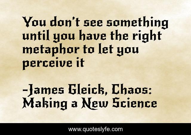 This page presents the quote "You don’t see something until you have the right metaphor to let you perceive it". Author of this quote is James Gleick, Chaos: Making a New Science. This quote is about geometry, chaos,.