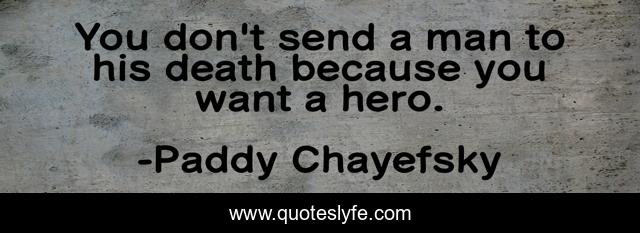 This page presents the quote "You don't send a man to his death because you want a hero.". Author of this quote is Paddy Chayefsky. This quote is about hero, man,.