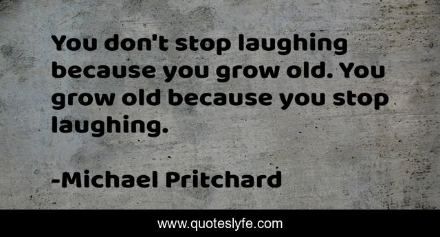 This page presents the quote "You don't stop laughing because you grow old. You grow old because you stop laughing.". Author of this quote is Michael Pritchard. This quote is about old, ageing, age, laughing, laugh, laughter,.