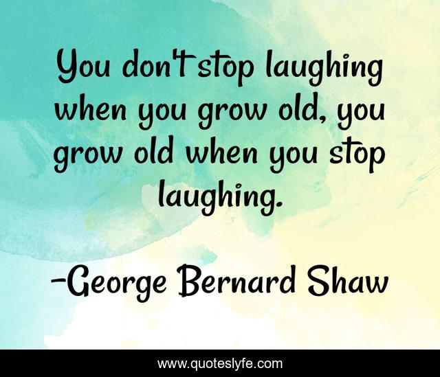This page presents the quote "You don't stop laughing when you grow old, you grow old when you stop laughing.". Author of this quote is George Bernard Shaw. This quote is about aging, aging-gracefully,.