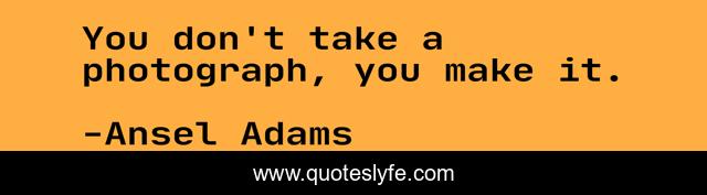 This page presents the quote "You don't take a photograph, you make it.". Author of this quote is Ansel Adams. This quote is about photography, art,.