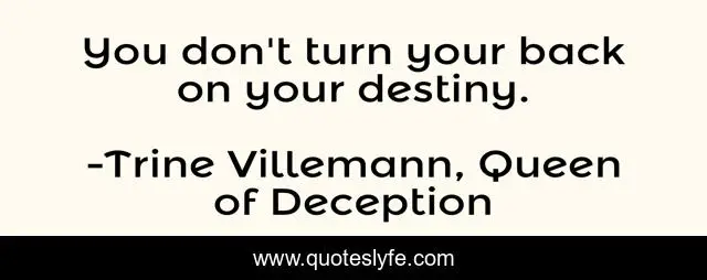This page presents the quote "You don't turn your back on your destiny.". Author of this quote is Trine Villemann, Queen of Deception. This quote is about monarchy, majesty, denmark, queen, royal-family, fiction, royalty, scandinavian-literature,.