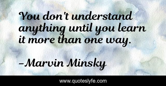 This page presents the quote "You don't understand anything until you learn it more than one way.". Author of this quote is Marvin Minsky. .