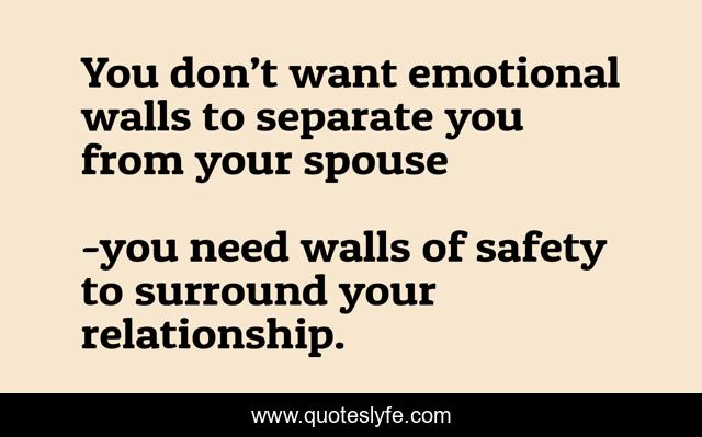 This page presents the quote "You don’t want emotional walls to separate you from your spouse". Author of this quote is you need walls of safety to surround your relationship.. This quote is about sue detweiler, 9 traits of a life giving marriage: how to build a relationship that lasts,.