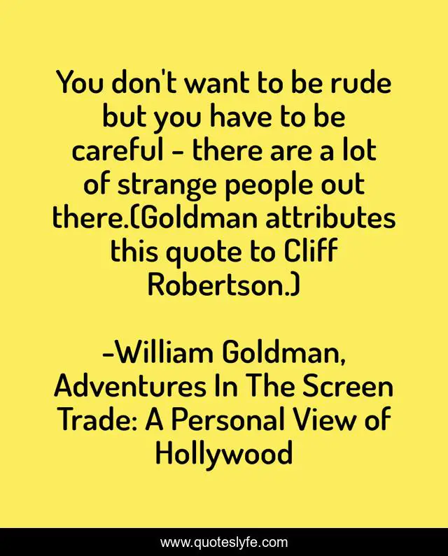 You don't want to be rude but you have to be careful - there are a lot of strange people out there.(Goldman attributes this quote to Cliff Robertson.)