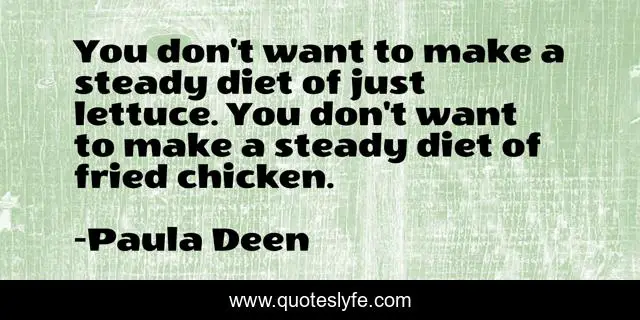 This page presents the quote "You don't want to make a steady diet of just lettuce. You don't want to make a steady diet of fried chicken.". Author of this quote is Paula Deen. .