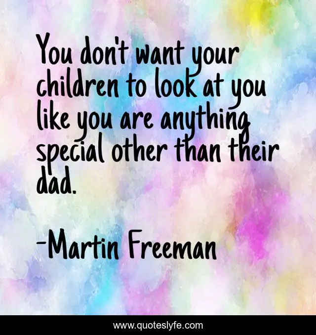 This page presents the quote "You don't want your children to look at you like you are anything special other than their dad.". Author of this quote is Martin Freeman. .