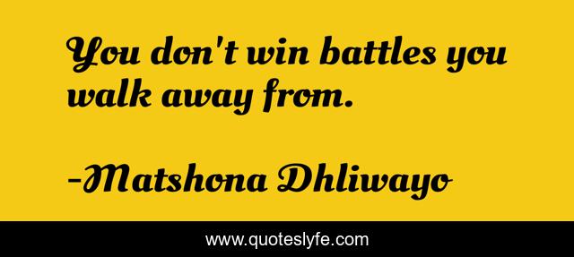 "Matshona Dhliwayo Quotes." Quoteslyfe.com, 2025. Fri. 05 Dec. 2025. <https://www.quoteslyfe.com/quote/You-don-t-win-battles-you-walk-83645>.