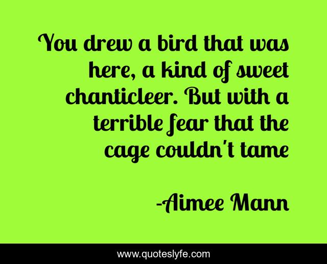 This page presents the quote "You drew a bird that was here, a kind of sweet chanticleer. But with a terrible fear that the cage couldn't tame". Author of this quote is Aimee Mann. .