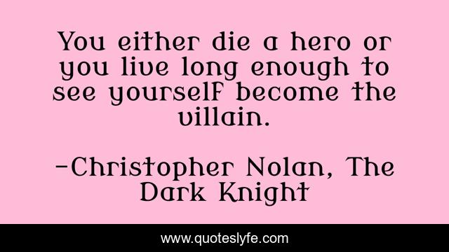 "Christopher Nolan, The Dark Knight Quotes." Quoteslyfe.com, 2025. Mon. 08 Dec. 2025. <https://www.quoteslyfe.com/quote/You-either-die-a-hero-or-you-178460>.
