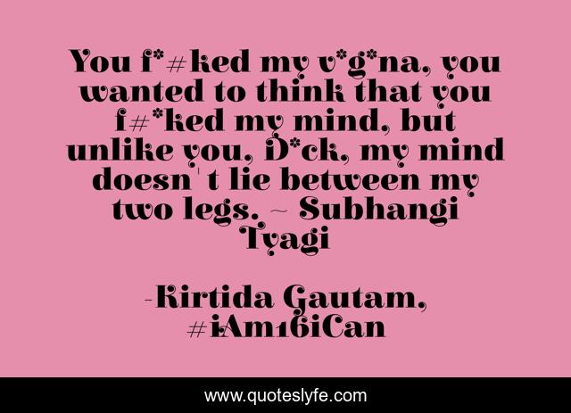 "Kirtida Gautam, #iAm16iCan Quotes." Quoteslyfe.com, 2025. Fri. 05 Dec. 2025. <https://www.quoteslyfe.com/quote/You-f-ked-my-v-g-na-91261>.