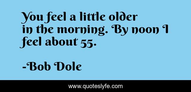 This page presents the quote "You feel a little older in the morning. By noon I feel about 55.". Author of this quote is Bob Dole. This quote is about feel, little,.