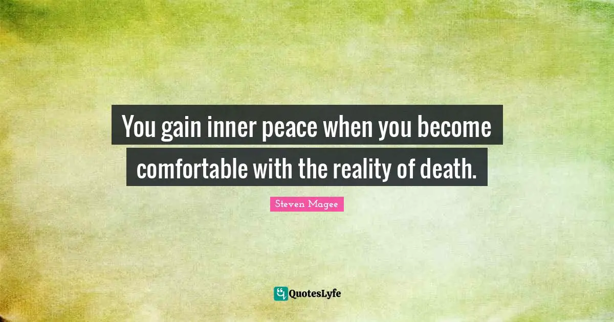 This page presents the quote "You gain inner peace when you become comfortable with the reality of death.". Author of this quote is Steven Magee. This quote is about spiritual, death, reality, dying, die, peace, comfortable, inner, wisdom,.