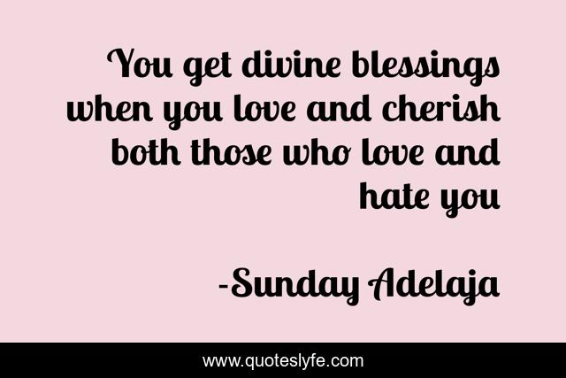 This page presents the quote "You get divine blessings when you love and cherish both those who love and hate you". Author of this quote is Sunday Adelaja. This quote is about love, people, money, principles, employment, worship, destiny, service, god,.