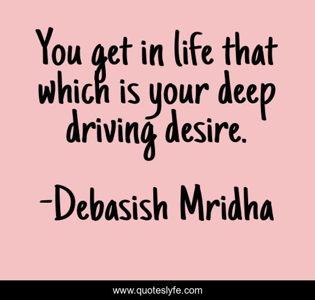 This page presents the quote "You get in life that which is your deep driving desire.". Author of this quote is Debasish Mridha. This quote is about desire, life, debasish, mridha, driving-desire, philosophy, debasish-mridha, you-get-in-life,.