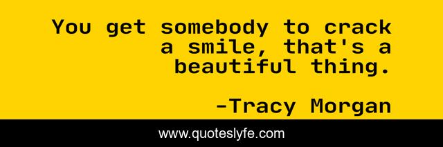 This page presents the quote "You get somebody to crack a smile, that's a beautiful thing.". Author of this quote is Tracy Morgan. This quote is about beautiful, somebody,.