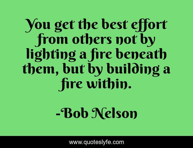 This page presents the quote "You get the best effort from others not by lighting a fire beneath them, but by building a fire within.". Author of this quote is Bob Nelson. This quote is about fire, building, effort,.