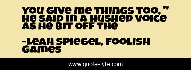 "Leah Spiegel, Foolish Games Quotes." Quoteslyfe.com, 2025. Fri. 05 Dec. 2025. <https://www.quoteslyfe.com/quote/You-give-me-things-too-he-said-235017>.