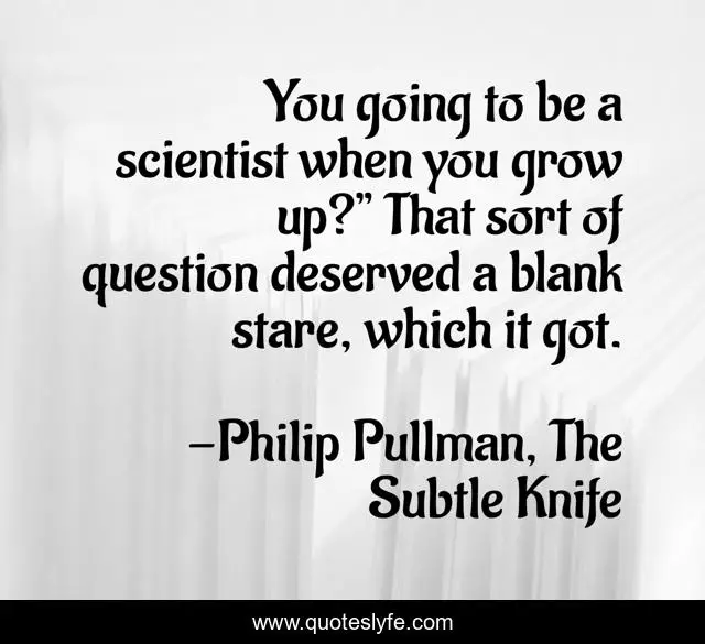This page presents the quote "You going to be a scientist when you grow up?” That sort of question deserved a blank stare, which it got.". Author of this quote is Philip Pullman, The Subtle Knife. .