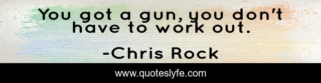 This page presents the quote "You got a gun, you don't have to work out.". Author of this quote is Chris Rock. This quote is about comedy, guns, chris-rock,.